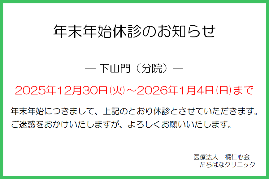 | 医院名 | 医療法人 橘仁心会 たちばなクリニック下山門 |
